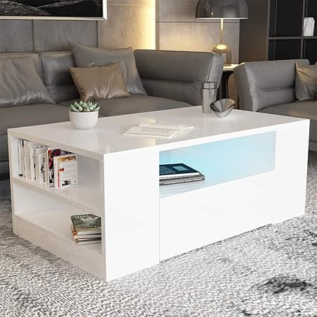 White High Gloss Coffee Table With Led Lights - Wonderlife High Gloss White Rectangle Coffee Table Led Light Modern Side End Sofa Table With Shelf And Drawer Living Room Home Office Furniture No Drawer Black Buy Online In Antigua And Barbuda At Antigua De